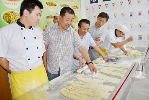 前天中午,我们照例在电脑前接待网上咨询的学员。这时有人敲门,我扭头一看,来了三个人,一位中年男子,一个二十多岁的小伙和一位着装优雅的女士。我急忙请他们进来,坐下后为他们泡上茶。那位小伙子先开口了:“我们这位想学咱们的兰州拉面,将来打算到我们国家开个牛肉面店……”我不由得一惊,心中暗想:原来他们是老外啊!我将学校的培训情况给他介绍了一番。他不住的微笑点头。听完他转身向那个中年人和女士用我也听不懂的外语说了一通。