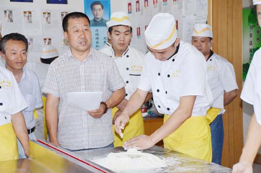 第二天中午,我特意去速成班,只见马老师用双手抓着那位先生的手一下一下地教他拉面,不断地给他讲拉面手法,那个小伙子在一旁翻译。他学的非常认真,后来才知道,那位中年人和那位女士是夫妻俩,他们来的目的就是要学会兰州拉面回国开牛肉面店。