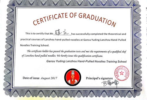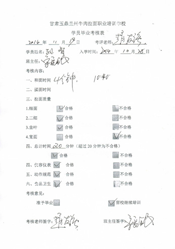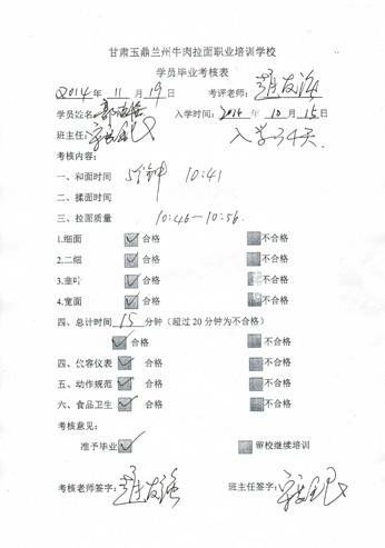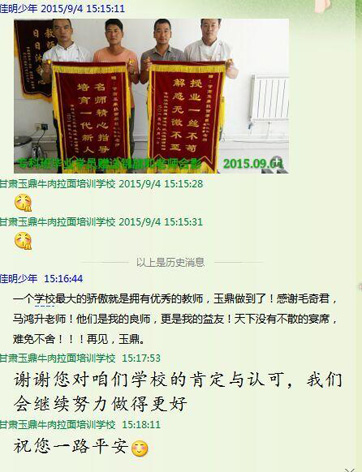 马老师说,感谢韩国学员不远万里来到中国,来到兰州选择玉鼎学校,希望在玉鼎学习生活的愉快,早日在韩国开起兰州拉面店。赵老师说,中韩两国世代友好,你们来到中国学习兰州拉面并把拉面带回国,是中韩友好的使者。希望通过你们架起中韩两国友谊的桥梁,让更多的韩国朋友了解兰州拉面、学习兰州拉面,品尝兰州拉面,把中国的兰州拉面文化发扬光大。