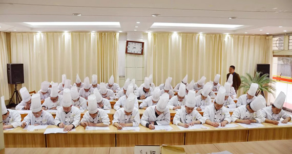 晚上7点多钟,四楼速成班的晚自习还是按照惯例在上,刘老师在给韩国学员和其他几名学员指导练习拉面。五楼专科班教室却是另一番景象:大家在忙碌地准备着生日宴会。晚上8点整,当班长将正在练习拉面的两位寿星请到专科班“开班会”的时候。教室里一片漆黑,静悄悄地,没有一点声音。